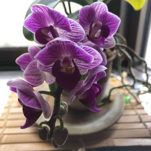 キッチン出窓のミニミニ胡蝶蘭です❣️ 1日1花のペースだったのが、遅れだしました。7個目の花が咲きましたよ! 残りの蕾は5個!なんとか先に咲いたのがあるうちに全部咲いて満開になって欲しいけど、、、 「日曜どうでしょう?」 4/20 : 変化なし 4/21 : 変化なし 4/22 : 8個目の蕾が膨らむ 4/23 : 8個目開花 残りの蕾は3個 4/24 : 変化なし 4/25 : 9個目がやや膨らむ 4/26 : 変化なし 4/27 : 9個目開花寸前! 4/28 : まだ咲かず 4/29 : 9個目開花!残りの蕾は2個! 4/30 : 変化なし 5/1 : 変化なし 5/2 : 変化なし 5/3 : 残り2個の内の1個が膨らむ! 5/4 : 変化なし 5/5 : 10個目開花!残り1個 5/6 : 残り1個! 5/7 : 最後の残り1個が膨らむ! 5/8 : やや膨らむ! 5/12 : 最後の花開く! 5/15 : 一番花が枯れはじめました!また蕾 が出てきました!切りがないので 観察報告終了にします。