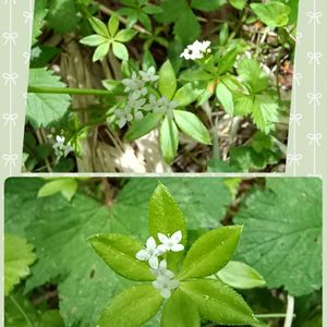 繊細なお花3種🌿 💠左上下:ヒヨクソウ オオバコ科 クワガタソウ属 名の由来は、対に出る細い花序を比翼の鳥にたとえたもの。 比翼とは2羽の鳥が互いにその翼を並べることをいう。 花冠は6-8mmで4裂、下側1片が小さい等、クワガタソウ属によく見られる特徴。 雄しべは2で花柱とともに飛び出します。 花冠筒部は短く、萼は4深裂し裂片は披針形。柄は2-3mmで萼とともに軟毛が密生。 けっこう毛深い。 柄の基部にあるのは苞と思われます。 あまり良く撮れていませんが😰 日光植物園では、バイカモが数輪咲いているすぐそばに、この花も数輪、わずかに咲いていました💜 💠右上2pic:クルマムグラ アカネ科アカネ亜科 ヤエムグラ属の多年草 草丈20~50cmの多年草。 茎は4稜があり、稜上に刺はない。 葉は普通6個輪生し、披針形で長さ1~3cm、幅0.3~1cm。先は尖り、裏面中脈には刺毛がない。 花は茎の上部に集散花序をつくって十数個の花をつけ、花冠は白色で直径約2.5mm、先は4裂する。萼には長い毛が生える。 💠右下2pic:ウマノミツバ セリ科 ウマノミツバ属 花期は7-9月。 茎頂に小散形花序を集散状につけ、少数の両性花と雄花をつける。花は白色の5弁花で、花弁は内側に曲がる。 まだ蕾の様なので、花開いたところを見てみたいです😍💕🎶 茎は直立し、よく枝分かれします。葉は(根出葉、枝葉とも)3全裂し、側小葉はさらに2つに深く裂け、掌状に5裂葉になることがあります。 同科別属のミツバは食用になるが、本種は食用にならなく、馬に食べさせる程度といった意味で「ウマノミツバ」という。