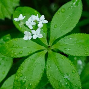 クルマムグラ アカネ科ヤエムグラ属 葉が6枚の輪生が特徴 白い花弁は4枚で先端に数個咲いています。 一つの花のサイズは3ミリ未満のちっちゃな花。 肉眼では細かい部分はよく解りません。 中国山地、標高1200m辺りの山道で出会いました。山野草マニアとしては、ほっこりしています。