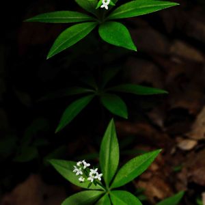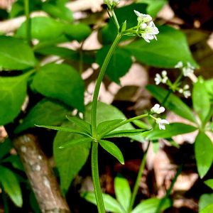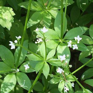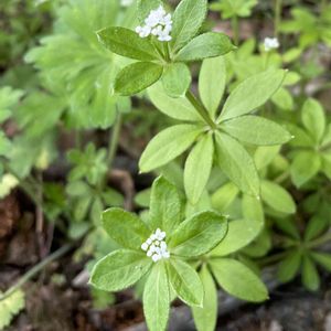 クルマムグラ(車葎) *アカネ科ヤエムグラ属 花期は6〜7月 北海道〜九州の山地の林内に生える。 葉は6輪生! 茎には4稜で無毛! 2〜3mmの白い花を数個〜十数個付ける! 似た花 オククルマグラ 茎の稜上や葉に刺状毛がある。 クルマバソウ 葉は6〜10個の輪生で花冠漏斗形 福島県 半田山