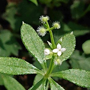 クルマムグラ(車葎) *アカネ科ヤエムグラ属 花期は6〜7月 茎は4陵形(断面が四角)で刺はない。 葉は普通6輪生し縁に微毛がある 花は白く4裂する! 萼に長い毛が生える 似たオククルマムグラは、茎に刺があり触るとザラザラするので見分けがつきます! 仙台市泉ヶ岳