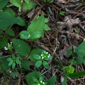 ひっそりとした森林の小道 見落してしまいそうな小さな花🌿 葉が4枚は四葉ムグラ 葉が8枚は八重ムグラ こちらは、葉が6枚の車ムグラ🌿