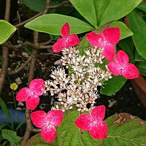 おはようございます😊 紫陽花HBA Jフランシー❤️⑧ 真っ赤な装飾花が色付きました❣️ 昨年🌱をお連れして初のお花です(*^▽^*) 思い違いで選んだ品種ですが…咲いて見れは可愛いです😍 2枚目は《火の鳥》⑨今年も沢山のお花をつけています💕 3枚目はヤマアジサイクレナイ この子も昨年🌱を頂いて初のお花です❤️ 4枚目黒葉紫陽花ライトマイファイヤー🖤❤️ 今年、黒葉に惹かれて小さな蕾をつけた苗🌱をお連れして赤い覆輪らしきものが出てきました❣️ ヤマアジサイの葉を入れて黒葉を対比させてみましたが、黒さがわかるでしょうか🖤💚 この子は偶然にも、GSの紫陽花の師匠と同じ頃に手に入れた🌱 今回初めてでは無く同じ花を、同じ日にお連れしたり‼️ 度重なりに驚いたお花です🫢 🏷️真っ赤な火曜日 🏷️艶やかな華曜日の花 🏷️可憐な火曜日
