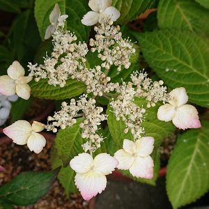 剪定した枝を何となーく 小さな鉢に挿したヤマアジサイ。 5年くらいかかったけど 一人前に小さな花をつけました。