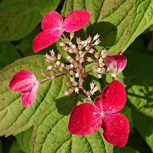 ヤマアジサイ-クレナイ 真っ赤な口紅のような色になりました。