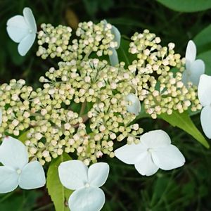 ヤマアジサイ 紅 紅いアジサイのはずなんですが、今年は白いんです💦💦少し赤が付いている箇所もありますがとても真っ赤になるとは思えません😭去年は紅くなったんだけどなぁ? どうしたの?