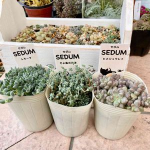 おはようございます。 3/30(木) 10-18営業です。 新入荷商品のご案内です。 人気のマジョール、アクレアウレウムが入荷しました!(うちで育てたものです) ★2号ビニールポット マジョール 200円 アクレアウレウム 200円 ルベンスリザード 150円 ピンクジュエル 150円 エルネスティ 150円 ★一寸プラ鉢 マジョール 100円 ブレビフォリウム 100円 そよ風の天使 100円 今回入荷分はけっこう珍しめの種類が多いです。 ルベンスリザード、ピンクジュエル、ブレビフォリウム、そよ風の天使、エルネスティ あたりは、あまりホームセンターでは見かけませんね。 ちょっと変わった種類が好きな方はぜひご覧になってみて下さい。 これからも私のレアセダムコレクションからいろいろ出していく予定です。