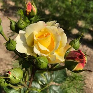 マイガーデン🌿 薔薇🌹開花シリーズ 3番目は🇫🇷 フランスアンフォさん 咲き始め カワイイ💛 大輪の花が咲くみたい 明日が楽しみ