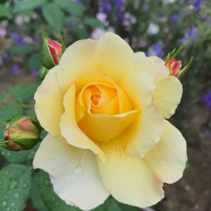我が家の庭は今、黄色い薔薇たちが頑張ってくれてます。 フランスアンフォさん朝露のフリル添え❤️(料理じゃない) (あ、フリルじゃないか。こういうの何て言うんだっけ?😅)