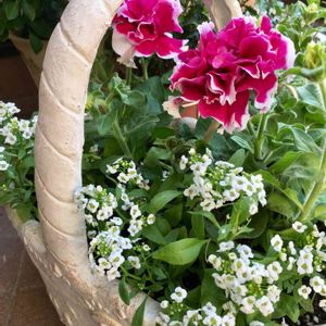 八重咲きのペチュニアと アリッサムの寄せ植え♡ パッと明るくなりました(о´∀`о)