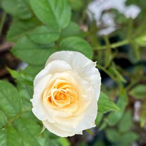 🌹イングリッシュアイズ 調子を崩して(?)春は咲きませんでした。 ホワイトから中心に向かってイエローになる素敵なバラなんです(本当はネ)
