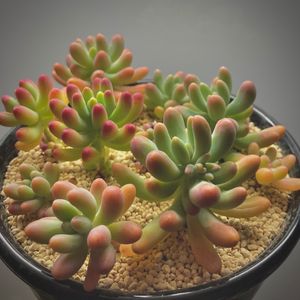 今晩は🤗もう一つ投稿しますねヾ(๑╹◡╹)ノ" 多肉植物の寄せ植えしました🥰🥰🥰 色合いを違う種類で寄せ植えしました((o(^∇^)o)) とってもとっても嬉しいです🥰💗💖💗❤️💓💛🧡 もう少し落ちついた挿し木をしたり葉挿しをして隙間を埋めていきます╰(*´︶`*)╯♡💛🧡❤️💚💓 🏷 オリオン 🏷 夕映え アエニオウム弁慶草科 🏷 初恋 グラプトベリア弁慶草科 🏷 恋心 セダム 弁慶草科 🏷 白絹姫 トラデスカンチア属 🏷 アーモンドネックレス ◎トラデスカンティア属(白絹姫)の特徴と種類・育て方 トラデスカンティア/白絹姫はこんな植物 アメリカ~メキシコに数十種類見つかっているものの、多肉化したものは「白絹姫」だけという小さなグループ。シラモンタナの名前で流通していることもある。夏型で冬に落葉し、春から再び新芽が吹いてくるタイプの植物で、寒さ暑さに強く日本でも栽培しやすい。ツユクサ科の数少ない多肉植物の一つで、銀毛冠(シアノティス属)、重扇(カリシア属)、ゼブリナ属などと共通点がある。 ◎育て方のコツ 真夏以外はよく日に当たる所に置く 冬場は地上部が枯れてしまうが、根は生きているので捨てないように 日本の草花と似た夏型サイクルで育てやすい 白い毛をきれいに育ててるには、できるだけ雨ざらしにしない。 秋が来たので元気にモリモリ育って可愛い花が咲くのが楽しみです♪(๑ᴖ◡ᴖ๑)♪⭐️⭐️⭐️⭐️⭐️