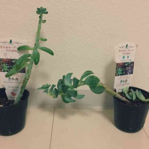 ホームセンターで100円叩き売りされてた子たち。恋心も薄氷も、つやつやしてるところがまだあるのに、どうしようもなく徒長してて悲しい。 長い茎にいっぱい葉っぱを千切った痕。ずっと日光を浴びてこれなかったんだね。私では失敗してしまうかもしれないけど、葉挿しや挿し木を頑張ってみたいって思ってます。