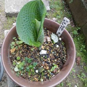 ギボウシ ウィールウィド。‘ 旋風 ’ ヒヤシンスの芽がわり。旋風といえば思い出すのはアニメ‘ ハリスの旋風’主人公 石田国松。白黒テレビでよく見ていました。‘旋風 ’をカゼと小学生ながら覚えてます。当時風船ガムが流行ってました。ハリスの風船ガム。この後‘ 茜ちゃん’って‘ ちばてつや’のアニメもやってました。還暦過ぎの年寄りしかわからない話です。 そしてこの‘ホイールウィンド‘ ‘ ファイアーワークス’や‘ ファイアーアンドアイス’と芽吹き時は似たような感じで育ち具合もなかなかゆっくりです。