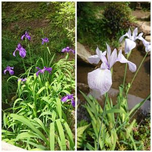 池のカキツバタが盛りです。 そして白に変異したカキツバタの株も開花。