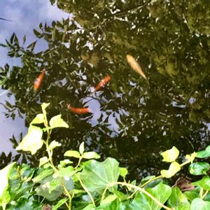 庭の池は三方向に広がっているのですが、先程とは違う部分に二匹いました。 お腹が空いていなかったのかしら。 合わせて六匹確認できました。 七匹お迎えしたから、残る一匹は果たして…🤔
