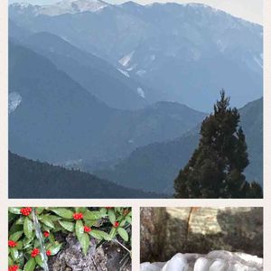 田舎宅から真正面に見える 標高1955mの剣山⛰ と、庭の池にある 石灰岩 千両がマッチしてます ユニークな白い石もいい雰囲気 出してます(。˃ ᵕ ˂。)