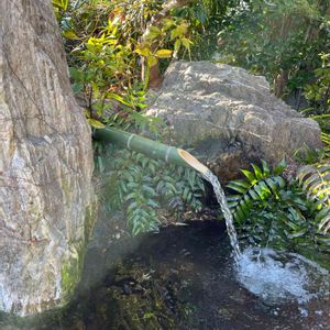 孟宗竹を斜めに切って 池の水の落ちるところを交換しました。