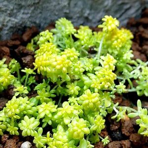 ゴールド系のセダム😳 庭のメダカ池🐟の堤が 無機質なコンクリートで寂しかったので モルタルでポケットを作って ロックガーデン風にしてみました🌵 黄金細葉万年草 クローバーさんに教えていただきました🌿 ありがとうございます😌