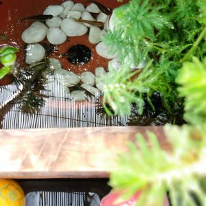 庭の池の水草ミリオフィラム🌿 手に負えない位増えます😅 池には、黒メダカ🐟🐡ちゃん メダカの遊び場の鉢植えの中😱 にいますよ~🎶 (2021/5pic)