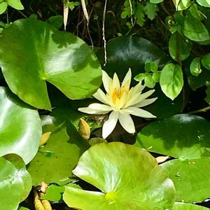 奥の方の池のクリーム色の睡蓮。 届きにくいところにあって、葉を除けてあげづらいんですよね。 つぼみも二つあるし、なんとかしなくっちゃ🤔