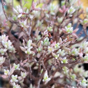 雨ざらし放置で雪にも負けず冬越しして、結果ボッサボサになったパンクチュラータ… ちょっと紅葉もしてるけと… 何が正解なのかわかりません😅 左下picは別鉢の軒下に株分けした子。どっちかというとこっちのイメージなんだけど。