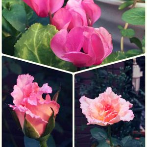 ⬆️とってもよく咲いてくれた🌹ビエ ドゥー🌸 ⬅️HCで逞しく生きていた🌹コンパッション✨が沢山の花をつけ始めました💗🎶 ↙️丈夫と言われる🌹ケルナーフローラ💗はうちに来た時から不調…下の方でひょっこり咲いてました˙꒳˙ ) ➡️近くにラベルがあったからたぶんエリナ💛 ↘️同じくHCからのエリザ💗似た名前💕
