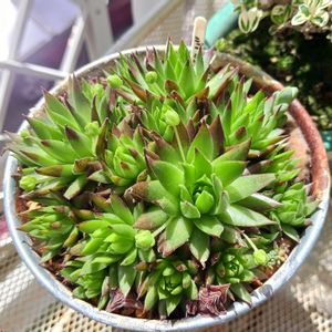 「(ジョビバルバ の)ヒューフェリーを株分けするなら今よ。」 と 光乃園の奥様に教えていただいたのは3ヶ月前。 何かと忙しくて、そのままになっています💦 右は、タニ友にもらったセンペルのメイタイム🍀︎ センペルなのに、ランナーを出さず ちょっと変わった殖え方をするそうです。 放置でいいらしいので、わたし(O型)向きかも😅