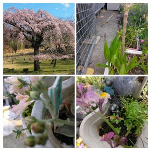 picNo1818 今晩は☀-------帰宅途中にわか雨🌧 今日も学友宅周辺地域でソメイヨシノ🌸を観ながら花見して何枚か撮影 ウグイスが鳴いていたり 素早い動作でタイワン🐿が居たりと初めて学友宅では見た 1⃣ソメイヨシノ🌸 2⃣桃色が綺麗に咲く桜?花桃? 3⃣学友宅玄関前のシバザクラ🌸 4⃣白さが際立つユキヤナギ 5⃣学友宅玄関前のチューリップの蕾 他にもブルーベリーの蕾、アセビの実が弾けてる姿や、ハナニラの水色 ヒメオドリコソウ、オオイヌフグリ 赤色の椿、を見ました ハナニラを今まで柚子の木や、茗荷の勢力、生育に押され見ることが無かったのに、柚子の木がダメになり ハナニラが優位に育ってた 一球根のハナニラを掘り起こし、切り花も採り持ち帰りして良いといい、持って帰りました 数年前モッコウバラ黄花の鉢に着床していたハナニラは抜いて今は無いので、また連れてきた🤗 ソメイヨシノ🌸はまだ見てるのもありまとめ記事にも更新します。 観た場所が違うからね こちらの木は樹齢55~のものだと推定。 私や学友が中学時代から記憶してるあの頃には植えられていたのです。 枝の剪定をされても季節に咲いてるソメイヨシノ🌸にまた逢えました。 かおるんるんさん 見てね🥰 たぬさんも見てね🥰