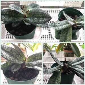 🤎パフィオ デレナティー🤎 新芽🌱がまあまあ順調に育っています。 夏の間は室内で管理。 扇風機🎐+育成ライト💡で涼しく。