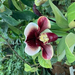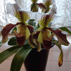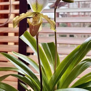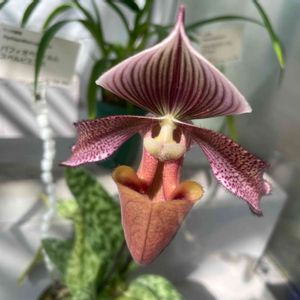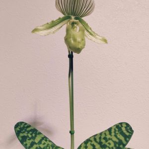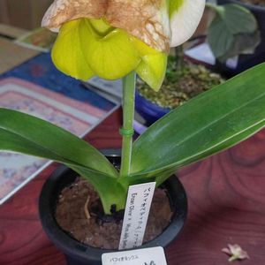 すべてが個性的すぎるパフィオペディラム。 この姿に一瞬で心奪われた😍わが家6つめの蘭。