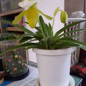さっちゃん発信 🏷白い水曜日♡ 爽やかな白いパフィオペディラムの花が素敵です♡🌿 ラン科 パフィオペディラム属