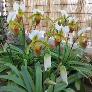 パフィオペディラム☘️3鉢 沢山咲いたので記念撮影です🍃