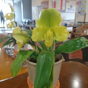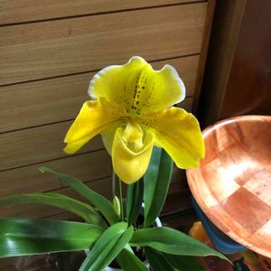 【パフィオペディラム】《ラン科》 花言葉 「思慮深さ」「優雅な装い」 パフィオペディルム(パフィオペディラム)は、カトレア、デンドロビウム、シンビジウムとともに世界4大洋ランのひとつとして古くから園芸家に愛されてきました。 パフィオペディルム(パフィオペディラム)は、巾着型やヘルメット型など多彩な造形に富んだ唇弁が特徴的です。 パフィオペディルム(パフィオペディラム)の学名Paphiopedilumは、ギリシャ語のパフィア(ヴィーナス)とペディロン(サンダル)に由来し、袋状の花を女神のサンダルにたとえて付けられたと言われています。また、英名Ladyslipper(レディースリッパ)は、女神のスリッパを意味します。 🏷月曜日にビタミンカラーに参加します。