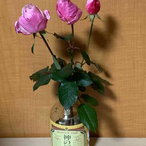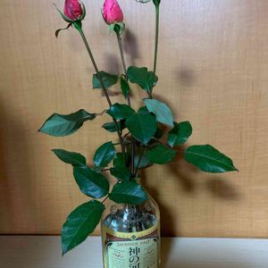 2022.12.30 クイーン エリザベス 15日に前庭から摘み取った今年最後の3姉妹🌹 毎日の水替えと、たまに茎の水切りでここまできましたが、咲かずに終わるかもと投稿してしまいました😅 葉っぱの数が減り、茎が短くなった分、葉っぱが瓶で無理な態勢になって押され、1番上の葉っぱも垂れてきた気がします🙄 綺麗に咲いたら、また投稿します😺 ※もし良ければ、クイーンエリザベスのタグ🏷を開いて頂くと、丁度差が解ります🌹