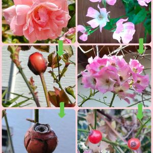 バラの実を見たことが無いって方がいらっしゃったので、投稿しますね、 左は、クイーン・エリザベス。 義母の庭に、昔の家から移植して咲き続ける強いハイブリッド・ティ・ローズ。 いつもは私が花後に剪定してたけど、義母が入院闘病中だから、カットのタイミング取れず。折角だから撒いてみようかな❓️🤔 右は我が家のアーチのバレリーナ。この種は、いつも鳥さんが食べ尽くしてくれます。 まあ、撒いてもドッグローズ崩れのいがいがバラになっちゃうからね。 バラの果実はローズヒップ。 実の周囲、実の先端、実を割った種の周りの毛にはアレルゲンがあり、これに対するアレルギーを持つ方にとってはとても危険、死に至ることもあります。毛の粉が風に乗って呼吸器に入るだけでも危険な体質の方もいらっしゃいます。 アレルギーが無い方はお茶にして飲んでね‼️😁 味は知らんけど。 それ以外にも、オレンジ色で長めのクチナシの実みたいなスパニッシュ・ビューティーとか、刺だらけのナニワバラやサンショウバラ。 様々な種があります。 ハイブリッド・ティ・ローズなどは実を付けない方が、次の花を綺麗に咲かせますが、クライミングや小花系のバラは、花の無い季節も果実で楽しめます。 では、お休みなさい。