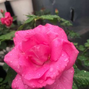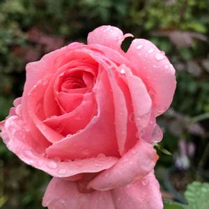 雨の中、庭を一回り。 咲いてるバラを撮り見返すと「この可憐なバラは誰⁉️」 😳! 丈夫だけが取り柄と肥料もろくに与えずネグレクト状態のクイーンエリザベスでした💧