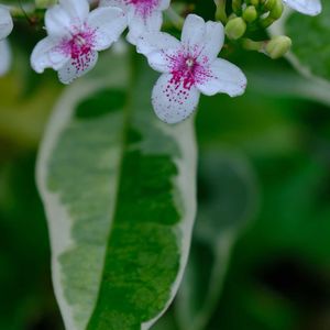 おはようございます。 植え込みで良く見かけるルリハナガサモドキは花径1センチほどの小さな花です。この木は葉っぱに斑が入って葉もキレイでした。