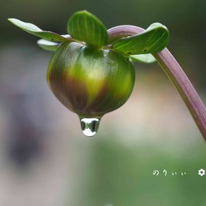 おはようございます。 ダリアのつぼみに雫が。 長居植物園にて ダリア園となりの竹林が映りこんでます