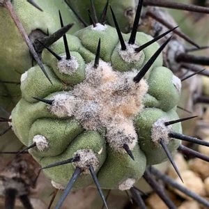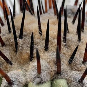 【Gymnocalycium asterium】 黒刺鳳頭。 冬の断水でぺしゃんこでしたが無事にムッチリ復活! 刺も動いてきて調子上がってきました。 左右対称で深緑のボディにワイルドな黒い刺が堪りません。