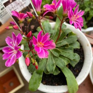 先日HCで一目惚れ🌸😍 レウイシアという高山植物らしいです。 多肉植物ともかいてるし葉っぱは多肉植物みたいだから乾燥気味に育てます😊