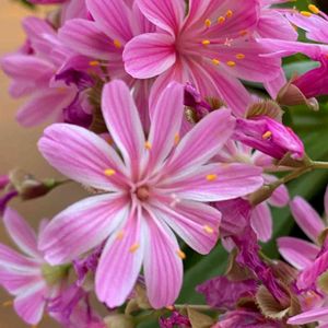 おはようございます😊 レウイシアその後10の花を 咲かせてくれました🤗🤗🤗 あと2つつぼみの茎が上がってきてます。 楽しみです🙆🏻♀️