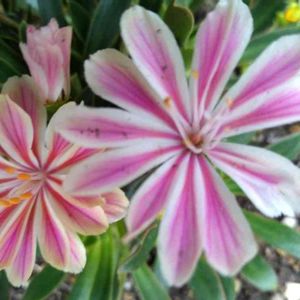 我が家に何鉢かあるレウイシアはたぶんレウイシア・コチレドンという種類です。 変わった種類のレウイシアを見つけ購入した時は蕾もなかったのですが〜 咲きました🌸 レウイシア・レディビバ〜桜のような優しいピンクの花です🌸 元気に育ちますように…