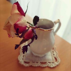 おはようございます🙋 もう可哀想だから、おウチの中へ 義母に習って、加湿器の側なら咲いてくれるかもと💕 🏷毎日ローズショー 参加しま〜す🙋 今日も良い一日になりますように💕🙏🍀💪💮👋