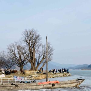 トゥムルモリ は北と南の川が合流して江漢になるところ 大きなケヤキの場所が撮影スポット ドラマ映画の撮影場所になっているらしい 川は凍ってる