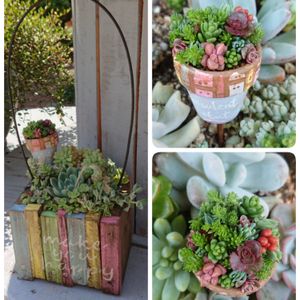 おはようございます! 7/10のオフ会でのモルタル鉢への寄せ植えは こんなイメージです! 左上の鉢を準備してますので 楽しみにしていただけたらいいな❤︎