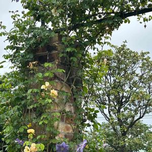 淡い黄色と紫の組み合わせが とても素敵でした バラは散りかけ、人もたくさんで 雰囲気だけ 遠目で・・
