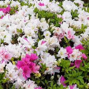 つつじが咲き始めました! この木は一本で、白、ピンク、斑入りになっているらしい。