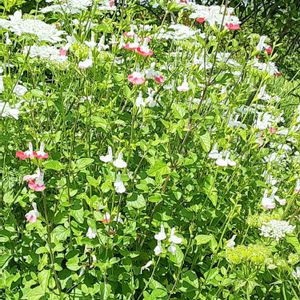 チェリーセージ ホットリップス オルレアに押され気味な💦 気温が低いと白い割合が多くて、暑くなってくると赤の割合が多くなるそうです!確かにまだ、白が多いですね✨😃