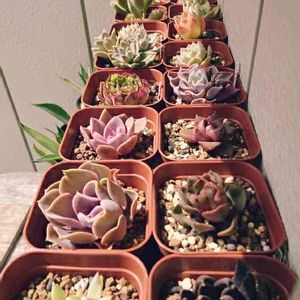 ほんの数鉢ですが スリット鉢に植え替えました。 いいですね~🎶この整列した感じ(^ω^)ウキウキ🎵 標本的な所も好みです。 これで少しはゴチャゴチャ感はなくなるかな(^ω^)